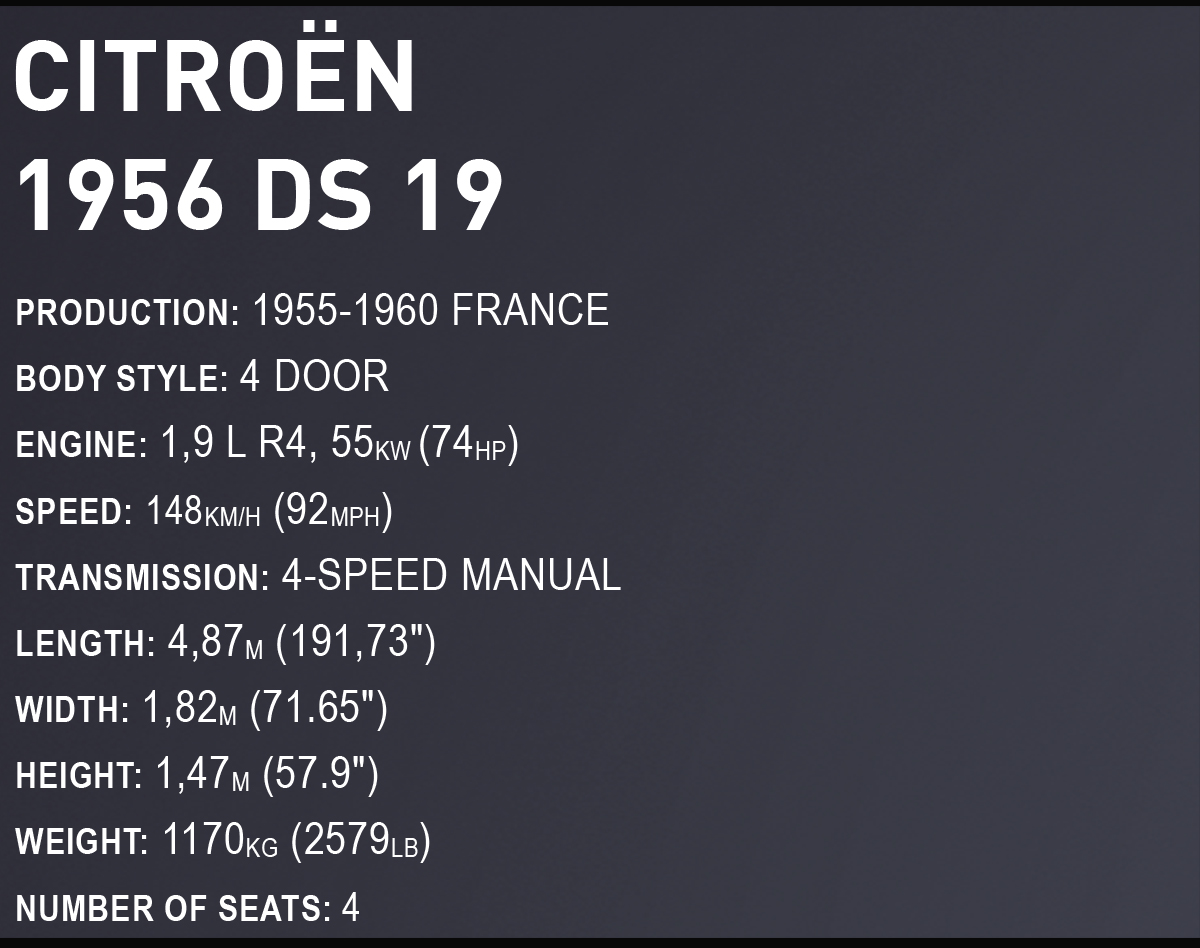 Exposez cette magnifique Citroën DS 19 de 1956 après l’avoir assemblée pièce par pièce.