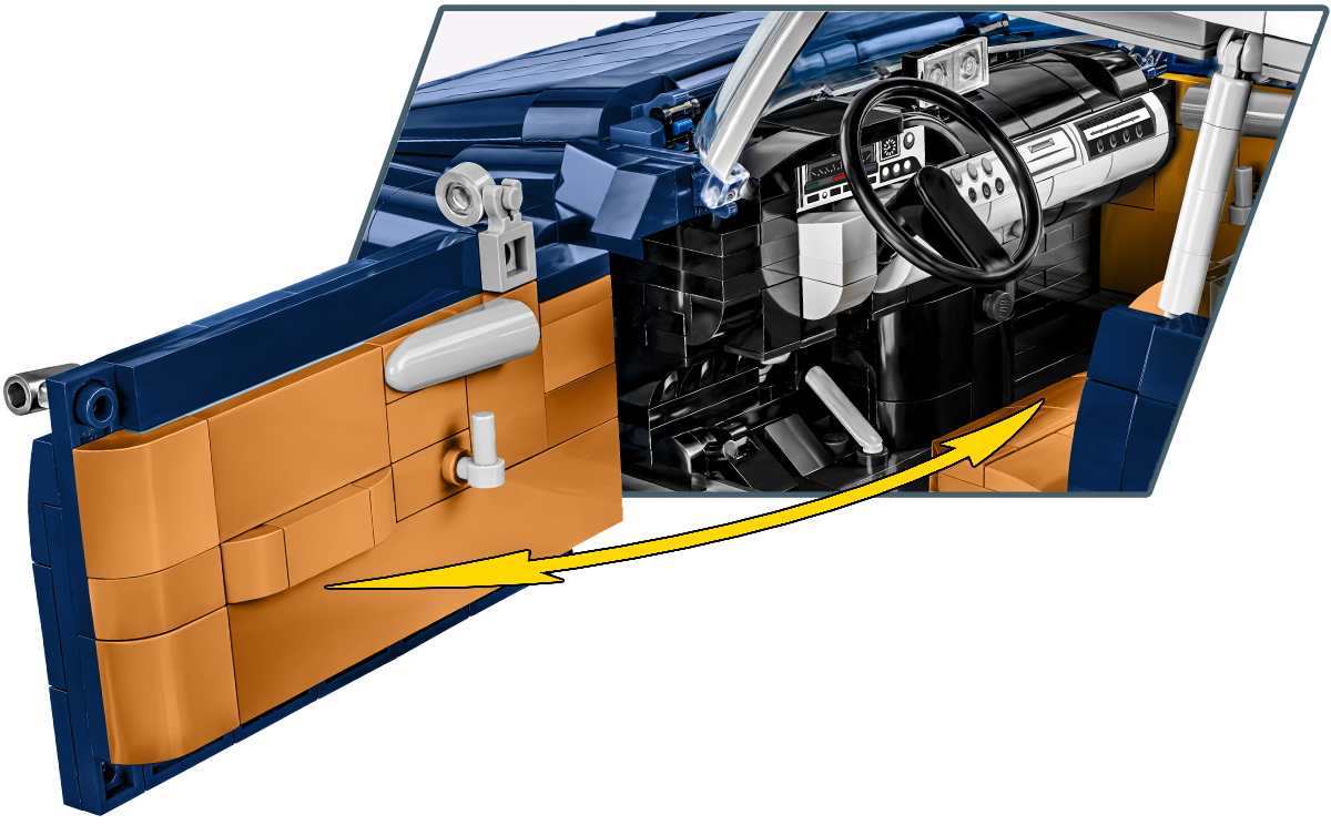 Ce modèle de briques, développé sous la licence Citroën, évoque avec succès l’icône de l’automobile française ! Grâce à la grande échelle 1 :12 et à l’utilisation de plus de 2 200 éléments, COBI a recréé fidèlement la forme distinctive de cette voiture de luxe. Une fois construite, la voiture mesure 40 cm. Le modèle contient de nombreux détails enrichis d’impressions durables de haute qualité. COBI a développé spécialement pour ce modèles des briques entièrement nouvelles, notamment pour le pare-brise très caractéristique ! Découvrez le bel intérieur, le tableau de bord, le volant qui fonctionne et les roues qui tournent. La voiture est équipée de portes qui s’ouvrent et d’un coffre. Sous le hayon se trouve un moteur richement détaillé, reproduit à partir de briques. Ce modèle est idéal pour les collectionneurs et les amateurs de voitures classiques. Les instructions claires et intuitives et les briques emballées dans des pochettes numérotées rendent le processus de construction fluide et gratifiant. Construisez-la !