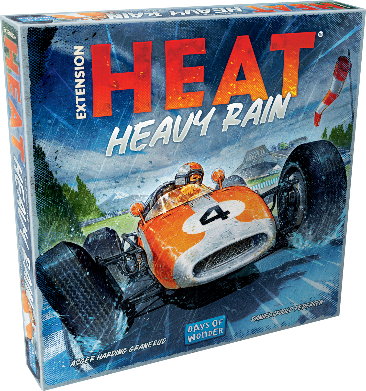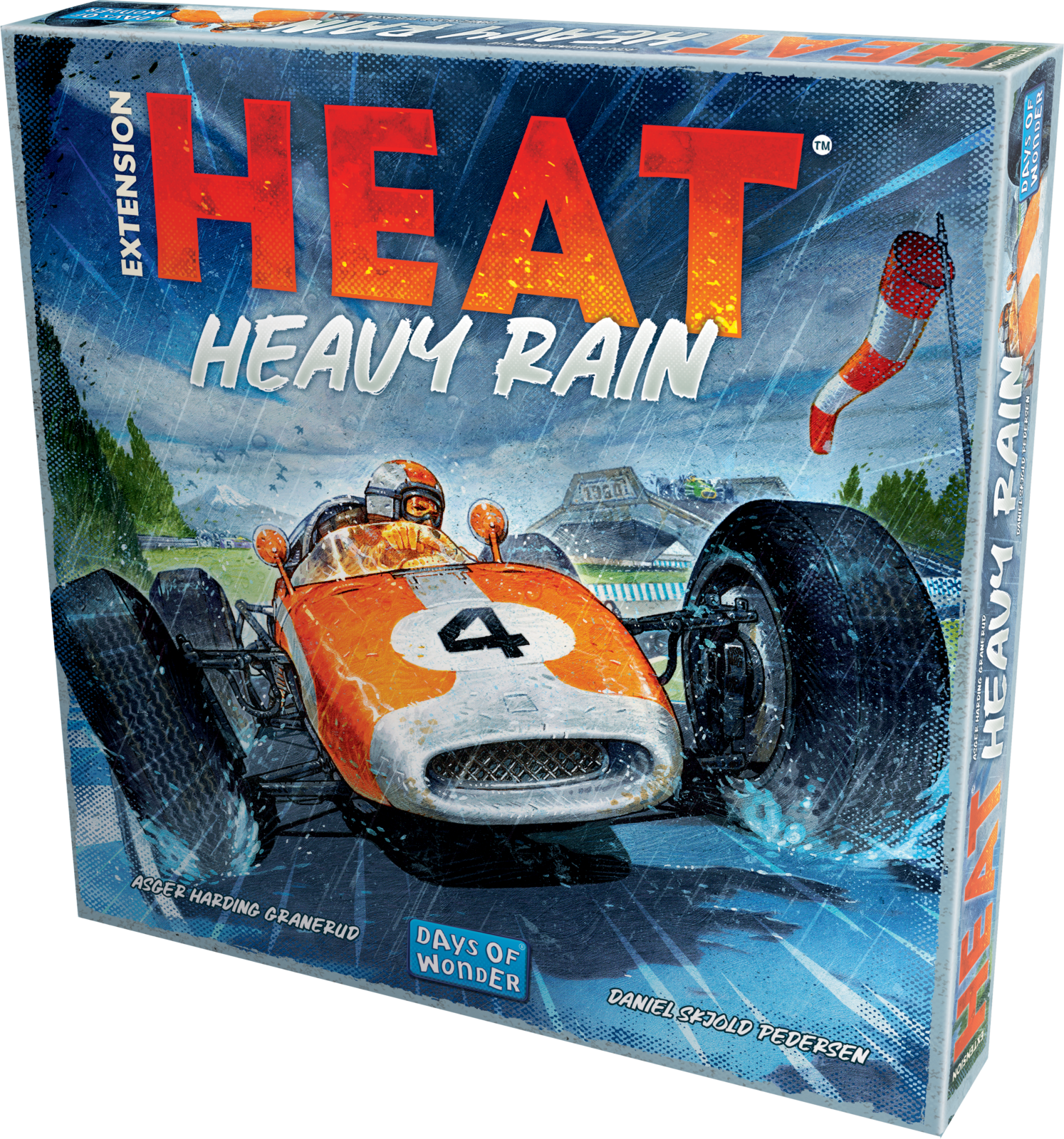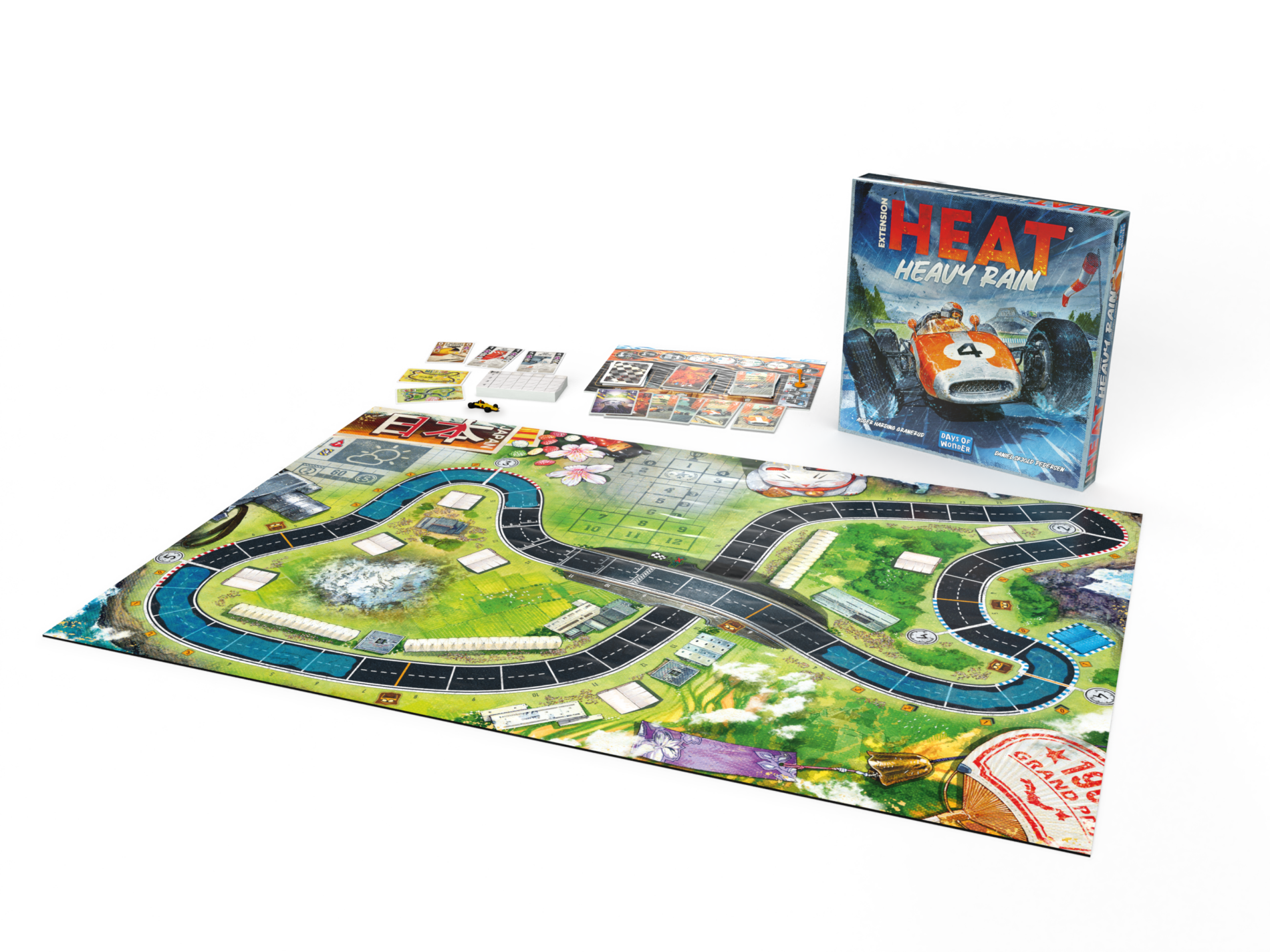 Heavy Rain introduit deux nouveaux circuits de course. Le Grand Prix du Japon se déroule juste après une pluie torrentielle et de grandes flaques d’eau restent devant les virages dangereux, réduisant votre capacité à ralentir. Le tristement célèbre circuit de Mexico offre une expérience palpitante aux pilotes chevronnés, avec ses multiples chicanes qui requièrent vitesse et habileté. Participez à la saison 1964 du Championnat et découvrez les nouvelles cartes d’amélioration « Air Intakes » qui vous aideront à refroidir votre voiture et à surmonter les dangers de ces nouveaux circuits. Cette extension comprend également tous les éléments nécessaires pour qu’un joueur supplémentaire puisse se joindre à vos courses. Source : Days of Wonder