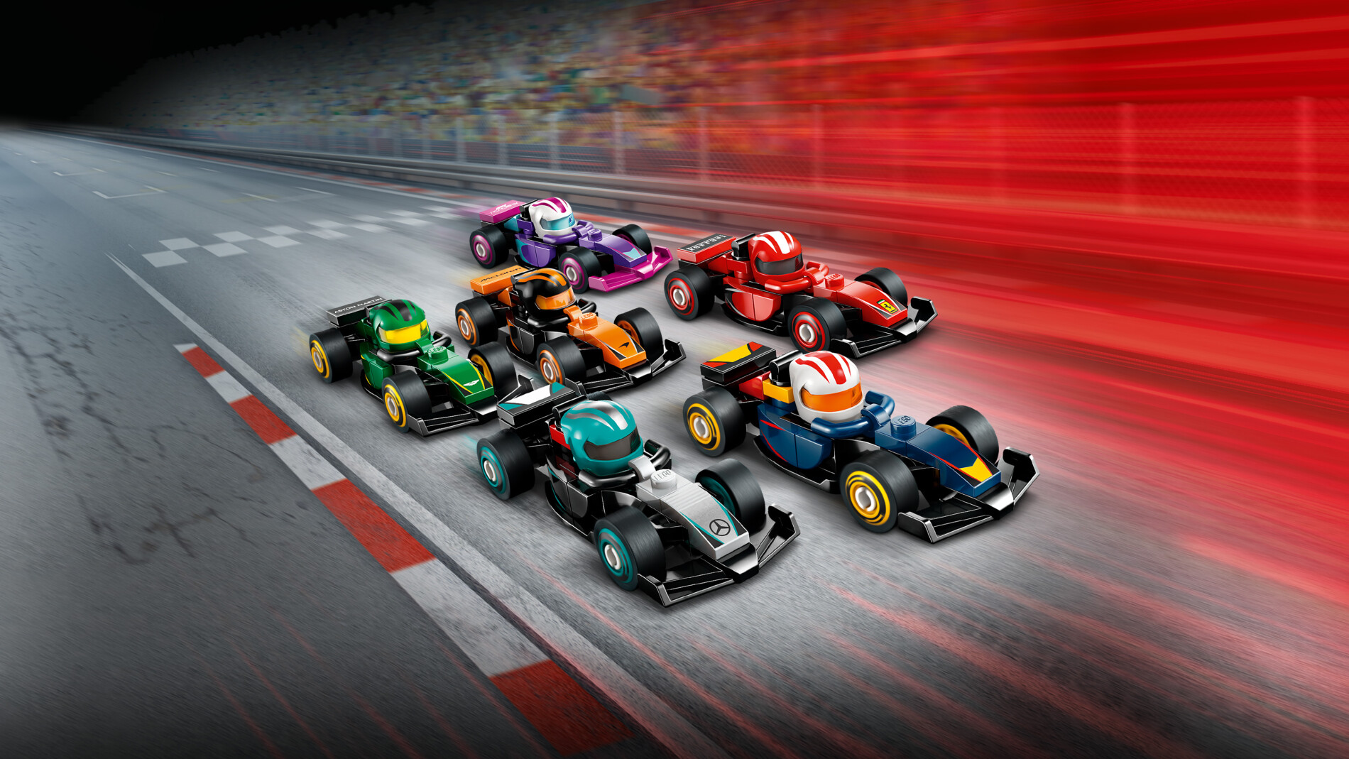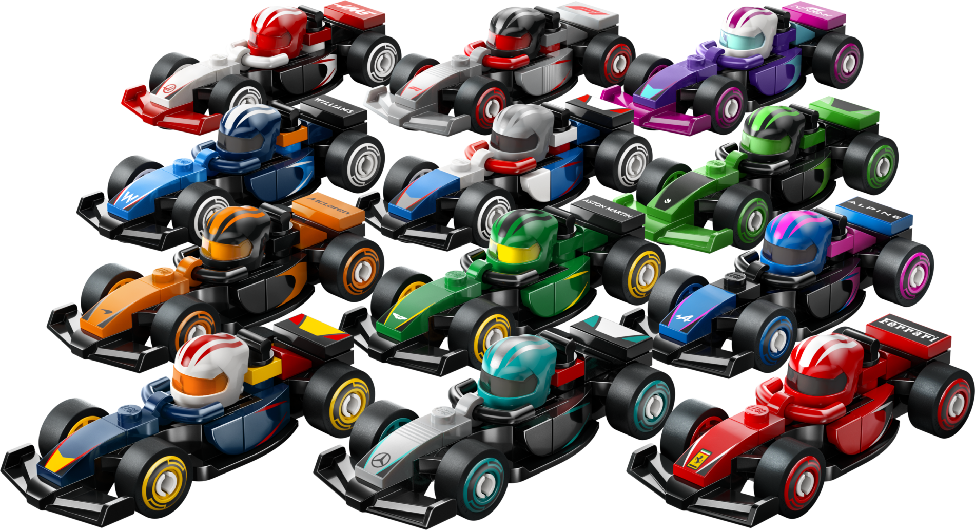Invitant les fans de F1 à organiser des courses passionnantes, chaque modèle de voiture affiche les logos et les couleurs d’une écurie de F1, inclut un casque dans le cockpit et possède des roues mobiles. Les enfants et les collectionneurs de véhicules peuvent construire ces bolides uniques, les exposer et les lancer au cœur de jeux plein d’action. » Source : LEGO