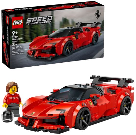 « Les garçons et les filles dès 9 ans peuvent construire et exposer cette élégante Voiture de course Ferrari SF90 XX Stradale LEGO® Speed Champions (77254) et imaginer des jeux haletants. Cette maquette Ferrari reprend de nombreux détails de conception de la version réelle, la Ferrari la plus puissante jamais homologuée pour la route. Le modèle intègre un habitacle avec cabine avancée, un aileron arrière, des sorties d’échappement hautes et des jantes ornées de l’écusson Ferrari. Le kit inclut également une minifigurine de pilote portant une combinaison et un casque Ferrari, que les enfants peuvent placer dans le cockpit monoplace pour afficher leur passion pour le constructeur automobile italien. Superbe idée de cadeau pour les enfants, les sets LEGO Speed Champions les invitent à construire des répliques de véhicules de légende. Avec ses outils de zoom, rotation en 3D et suivi de la progression, l’appli LEGO Builder permet de construire chaque set en toute confiance. Contient 339 pièces. » Source : LEGO