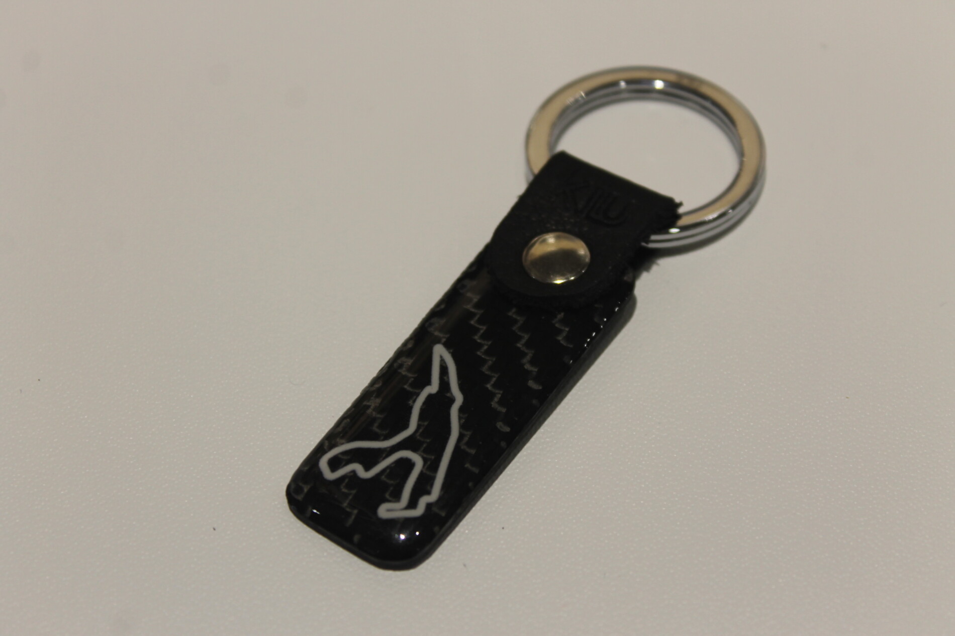 « Associant les matériaux les plus nobles de l’automobile, ce porte-clés en métal, cuir et carbone rend hommage aux sports mécaniques. Le carbone est upcyclé à partir de pièces de voitures ou motos de course et protégé par une résine. Grâce au QR code à l’arrière, vous pouvez accéder à son historique (infos sur la provenance, photos, etc.) Le cuir provient de chutes de production ou de tanneries végétales locales ».