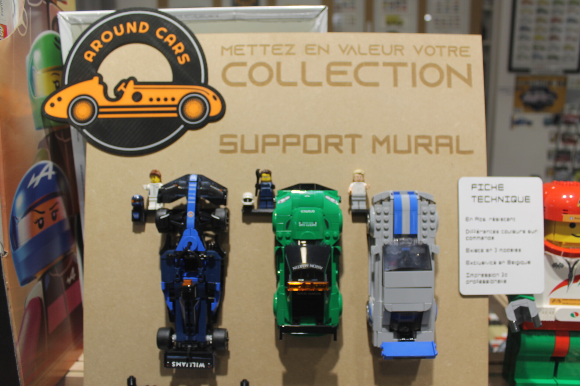Nos supports pour les LEGO® Speed Champions vous permettent de mettre en valeur votre collection et exploitant les parois verticales (Murs, parois de vitrine,…). Nos supports sont imprimés en 3D en Belgique et sont une exclusivité d’Around Cars Concept Store. Il y a plusieurs modèles disponibles.